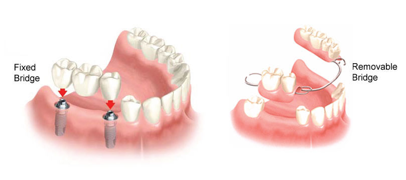 Removable Bridge: The removable bridge is attached either to two natural teeth or to dental implants. But it can be removed for cleaning. It is a short-term solution that will not offer long-term dental health benefits.